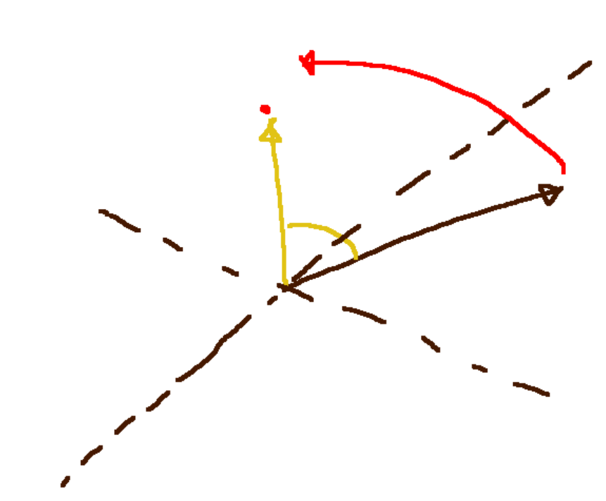 이게 진짜 골머리 앓았던 문제였다. 특정 벡터가 어떤 타겟을 바라보도록 회전시키려면 어떻게 해야할까? 필자는 단순하게 그냥 두 벡터 사이의 각을 구해서 회전을 나타내는 벡터 성분인 x, y, z에 적용해주면 될 것이라 생각했다.