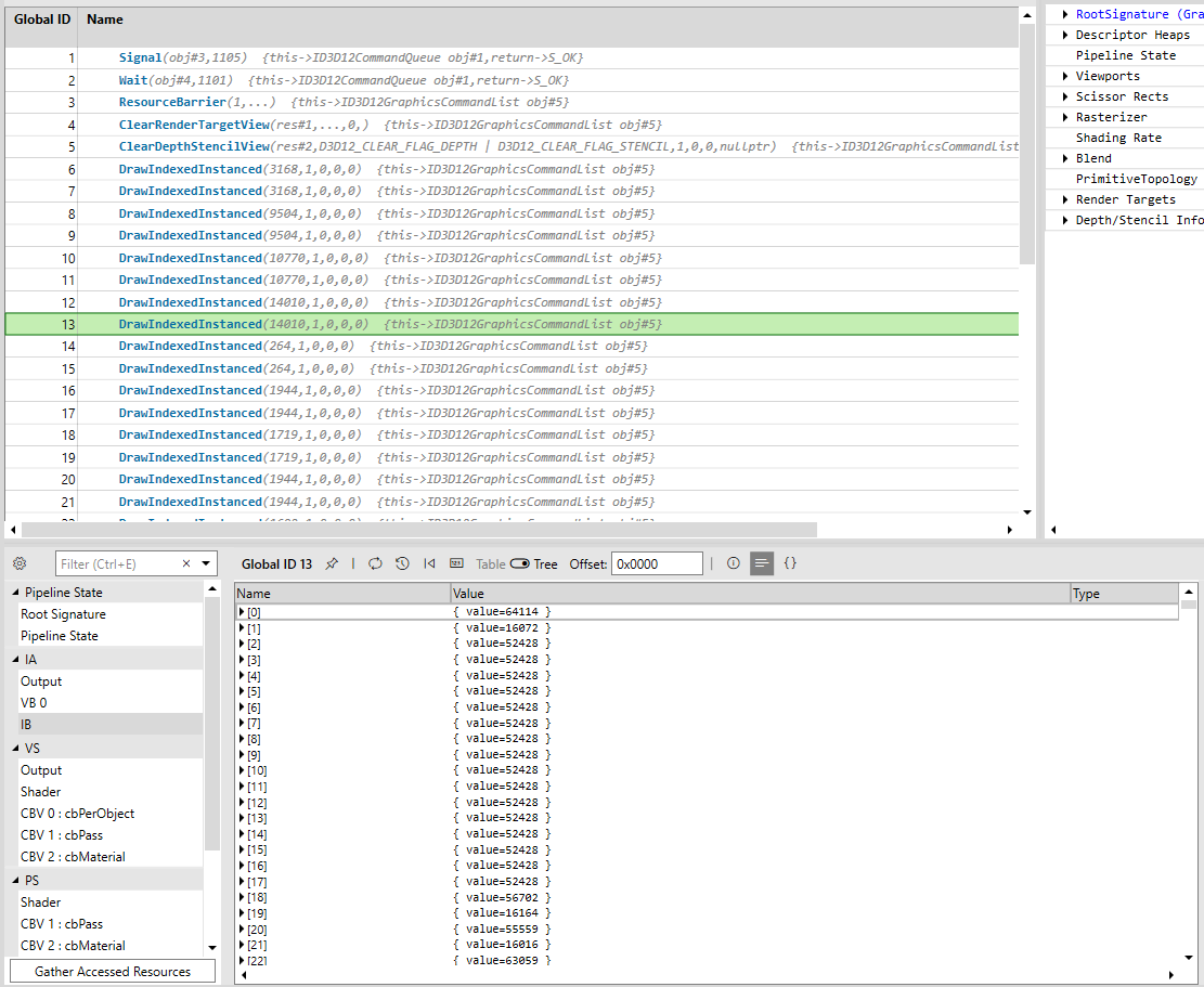 그럼 남은건 엔진 자체의 코드 문제다. 일주일간 디버깅을 했지만 문제가 뭔지, 뭐를 고쳐야하는지 전혀 갈피가 잡히지를 않았다. 그러던 중 PIX라는 그래픽 디버깅 툴을 알게되었다. 어플리케이션의 런타임 중 디버그를 도와주는 녀석으로, 그래픽 렌더링과 관련된 정보를 모두 확인할 수 있다. 그리고 여기서 문제점을 발견했다.