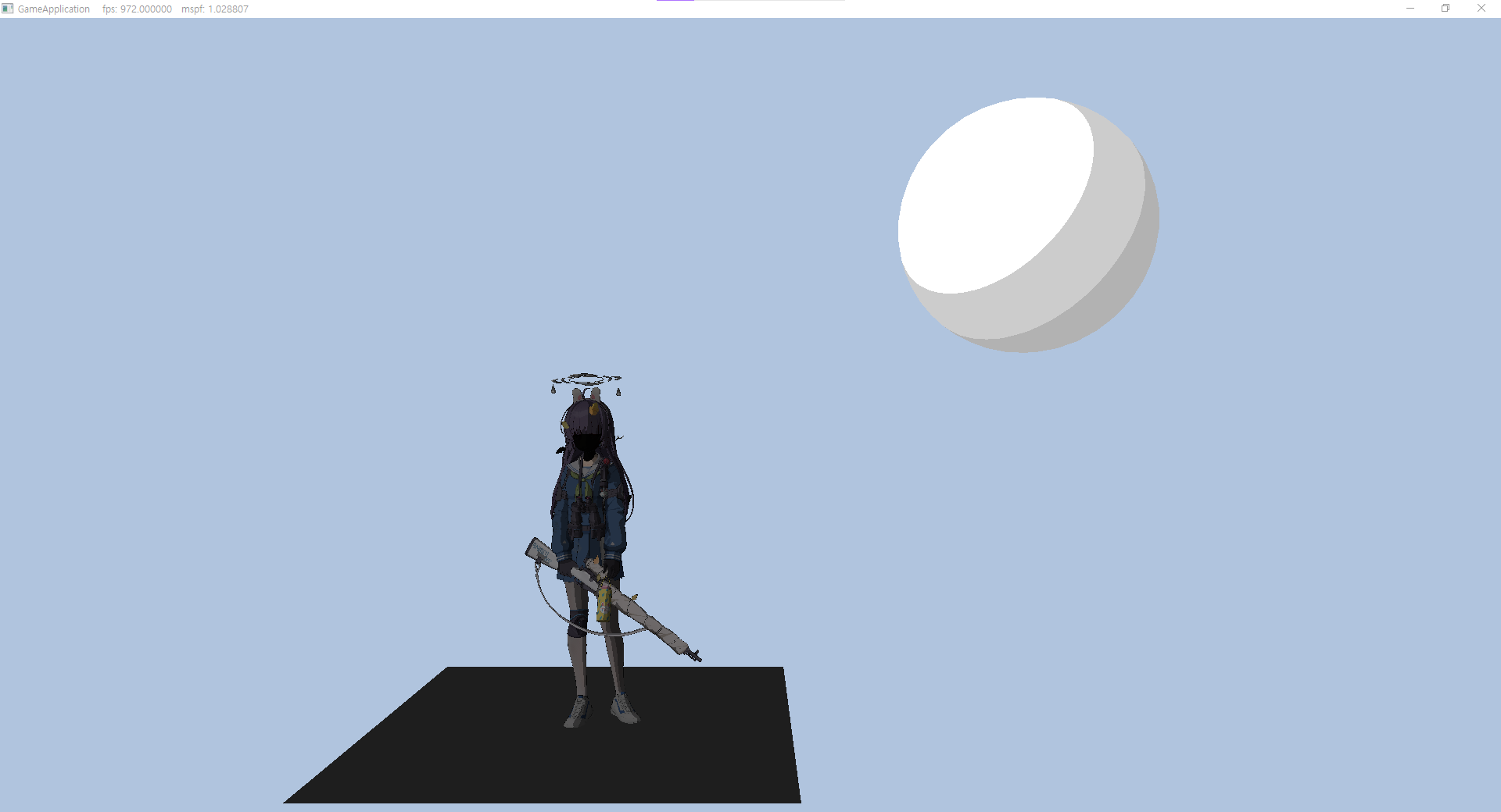 일단 바로 눈에 보이는건 미유의 얼굴과 바닥 평면이 검은색으로 렌더링 되고 있다는 것, 그리고 눈에 띄게 전체적인 모델의 밝기가 확 줄었다는 것이다. 모델에 있던 머터리얼 값을 불러들이지 않고 임의로 초기값을 세팅해서 여태 렌더링했기 때문에 이런 문제가 있을줄은 전혀 상상도 못했다. 당연히 머터리얼 값을 읽는 부분을 만들고 나서 이런 문제가 발생 했으니 머터리얼 부분부터 이슈를 찾아가야했다.